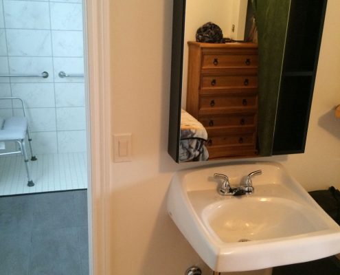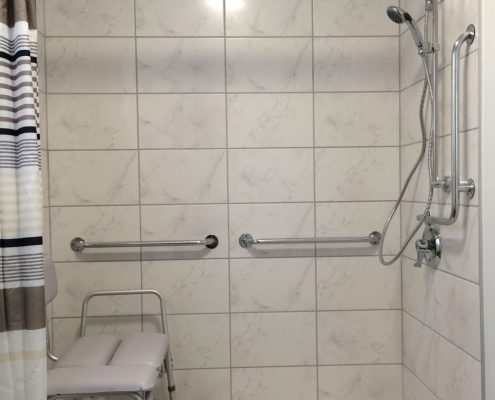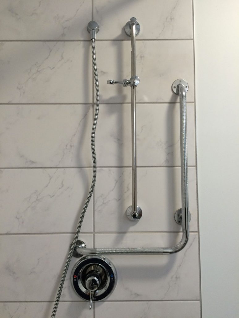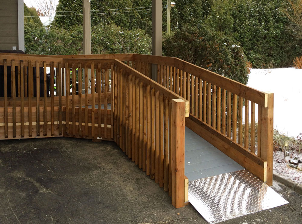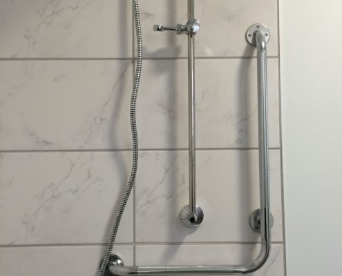 Adaptation de domicile pour une personne à mobilité réduite en collaboration avec l’ergothérapeute. Aménagement pour accès à la résidence ainsi qu’une salle de bain adaptée sur mesure.